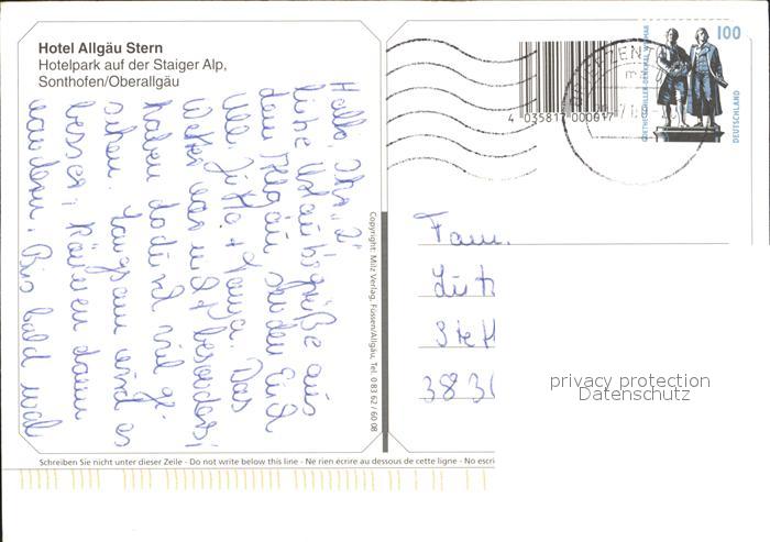 72283526 alte Postkarte Sonthofen Oberallgaeu Hotel Allgaeu Stern Hotelpark Staiger Alp Allgaeuer Alpen postalisch gelaufen Erhaltung siehe scans KatCode: 11110009780139