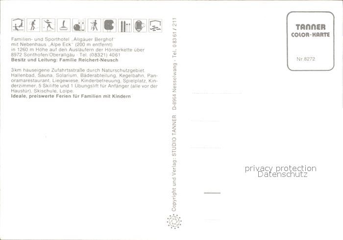 72105193 Sonthofen Oberallgaeu Hotel Allgaeuer Berghof postalisch nicht gelaufen Erhaltung siehe scans KatCode: 11110009780139
