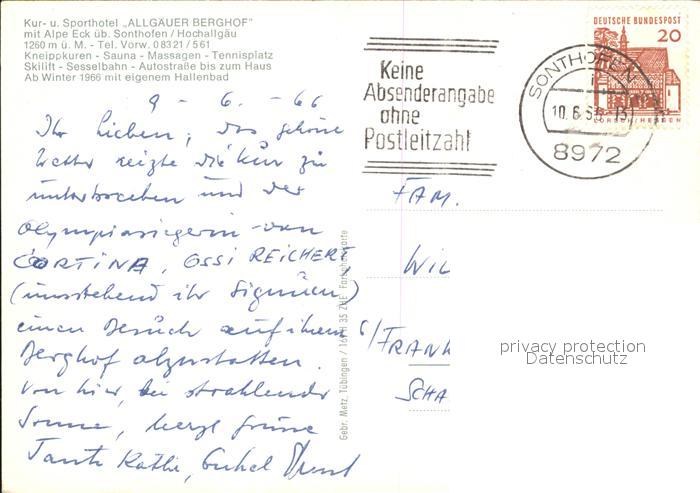71977663 alte Postkarte Sonthofen Oberallgaeu Hotel Allgaeuer Berghof postalisch gelaufen Erhaltung siehe scans KatCode: 11110009780139