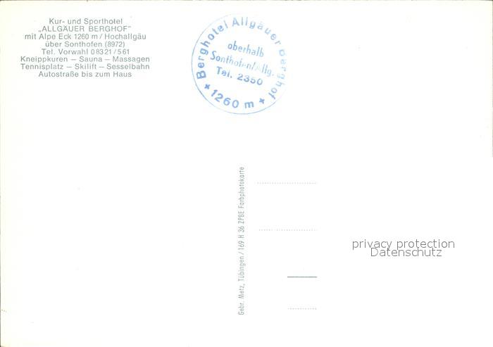 72505986 Sonthofen Oberallgaeu Hotel Allgaeuer Berghof postalisch nicht gelaufen Erhaltung siehe scans KatCode: 11110009780139