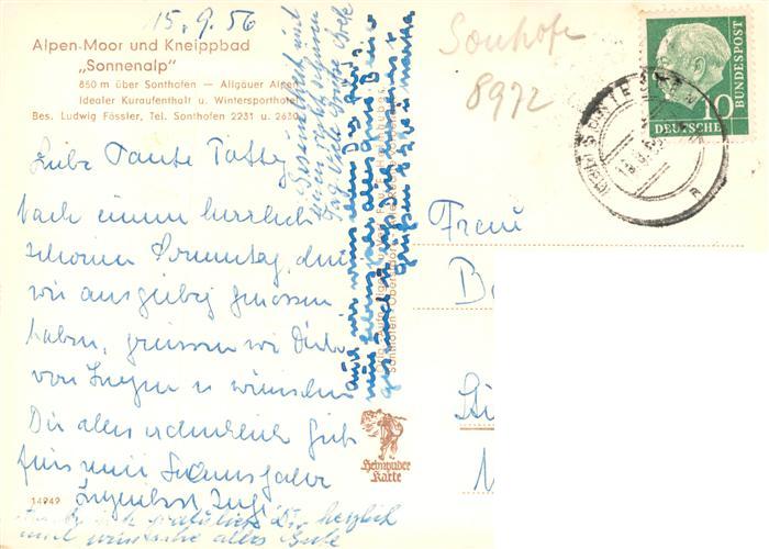 73904146 alte Postkarte Sonthofen Oberallgaeu Hotel Sonnenalp Baehaus Neubau postalisch gelaufen Erhaltung siehe scans [WerneD78] KatCode: 11110009780139
