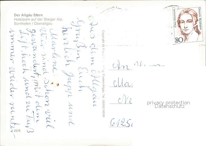 72449070 alte Postkarte Sonthofen Oberallgaeu Hotelpark Staiger Alp postalisch gelaufen Erhaltung siehe scans KatCode: 11110009780139
