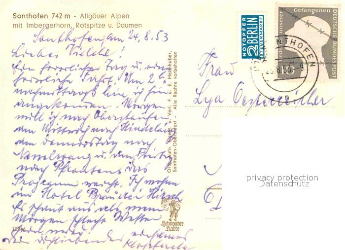 72776482 alte Postkarte Sonthofen Oberallgaeu Imbergerhorn Rotspitze Daumen postalisch gelaufen Erhaltung siehe scans [KathaD81] KatCode: 11110009780139