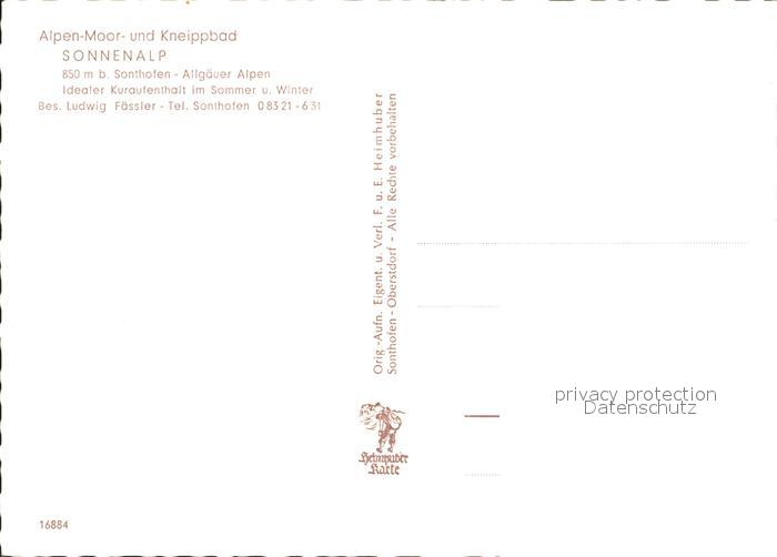 72016148 Sonthofen Oberallgaeu Kneippbad Sonnenalp postalisch nicht gelaufen Erhaltung siehe scans KatCode: 11110009780139