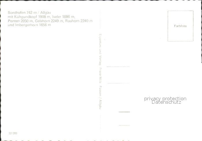 72574259 Sonthofen Oberallgaeu Kuehgundkopf Iseler Ponten Geishorn Rauhorn Imbergerhorn postalisch nicht gelaufen Erhaltung siehe scans [KathaD79] KatCode: 11110009780139