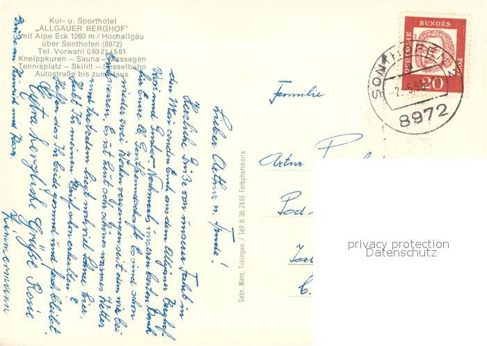 73049062 alte Postkarte Sonthofen Oberallgaeu Kur Sporthotel Allgaeuer Berghof postalisch gelaufen Erhaltung siehe scans [KathaD81] KatCode: 11110009780139