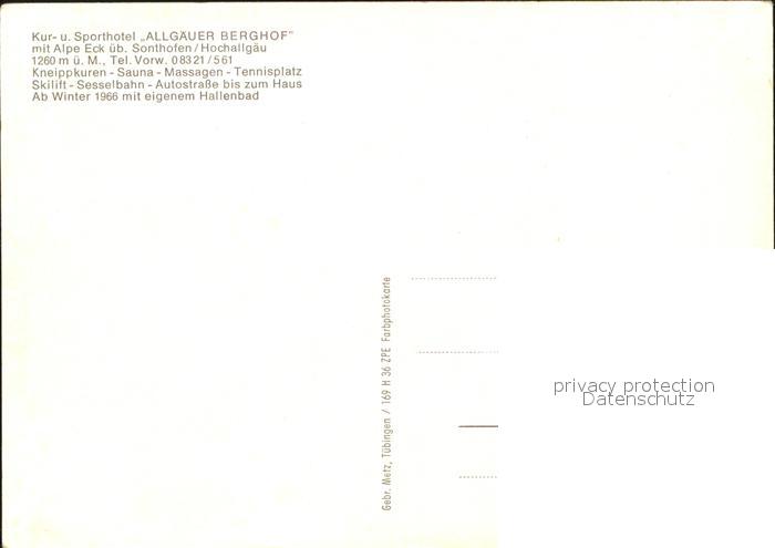 71928671 Sonthofen Oberallgaeu Kur Sporthotel Allgaeuer Berghof postalisch nicht gelaufen Erhaltung siehe scans KatCode: 11110009780139