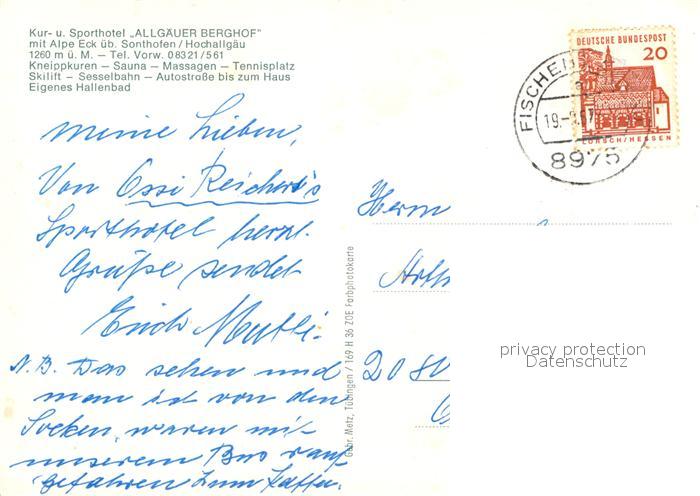 72962135 alte Postkarte Sonthofen Oberallgaeu Kur- und Sporthotel Allgaeuer Berghof postalisch gelaufen Erhaltung siehe scans [PaolaD17] KatCode: 11110009780139