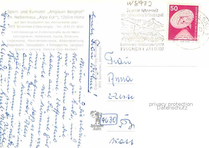 72884167 alte Postkarte Sonthofen Oberallgaeu Kur und Sporthotel Allgaeuer Berghof postalisch gelaufen Erhaltung siehe scans [WerneD78] KatCode: 11110009780139