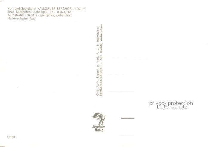 73803674 Sonthofen Oberallgaeu Kur und Sporthotel Allgaeuer Berghof postalisch nicht gelaufen Erhaltung siehe scans [WerneD78] KatCode: 11110009780139