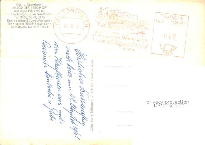 72538639 alte Postkarte Sonthofen Oberallgaeu Kur- und Sporthotel Allgaeuer Berghof postalisch gelaufen Erhaltung siehe scans [AndreD76 kt119box] KatCode: 11110009780139