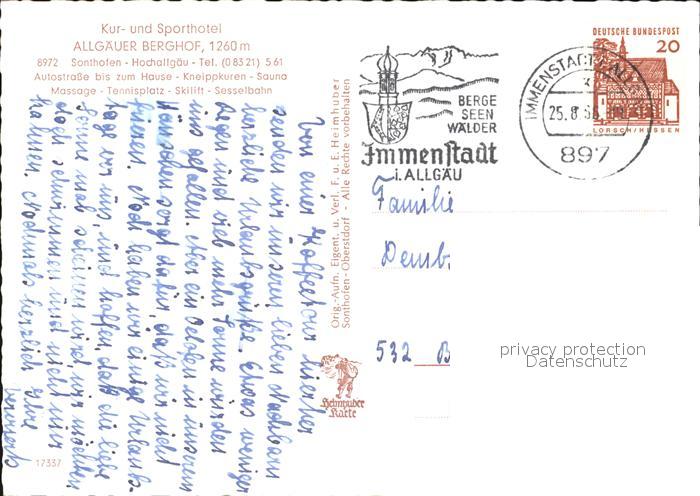 72451260 alte Postkarte Sonthofen Oberallgaeu Kur- und Sporthotel Allgaeuer Berghof postalisch gelaufen Erhaltung siehe scans KatCode: 11110009780139