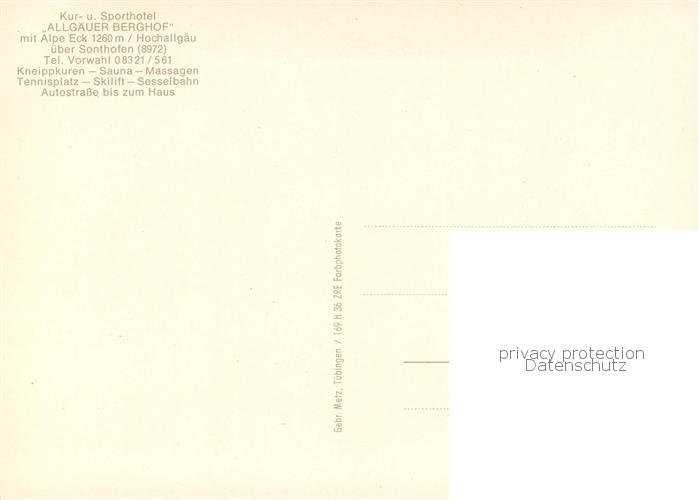 73780452 Sonthofen Oberallgaeu Kur und Sporthotel Allgaeuer Berghof postalisch nicht gelaufen Erhaltung siehe scans [WerneD78] KatCode: 11110009780139