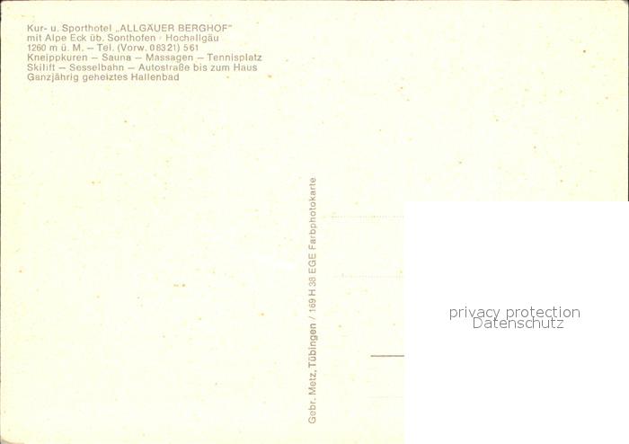 72600573 Sonthofen Oberallgaeu Kur und Sporthotel Allgaeuer Berghof Alpe Eck postalisch nicht gelaufen Erhaltung siehe scans [FriedD77] KatCode: 11110009780139