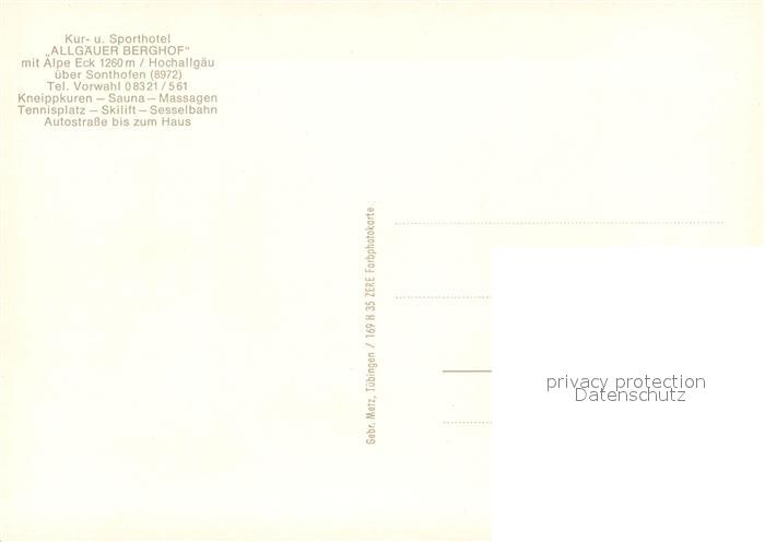 73678544 Sonthofen Oberallgaeu Kur- und Sporthotel Allgaeuer Berghof mit Alpe Eck Allgaeuer Alpen postalisch nicht gelaufen Erhaltung siehe scans [FriedD77] KatCode: 11110009780139