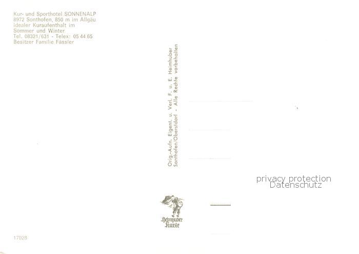73803707 Sonthofen Oberallgaeu Kur und Sporthotel Sonnenalp postalisch nicht gelaufen Erhaltung siehe scans [WerneD78] KatCode: 11110009780139