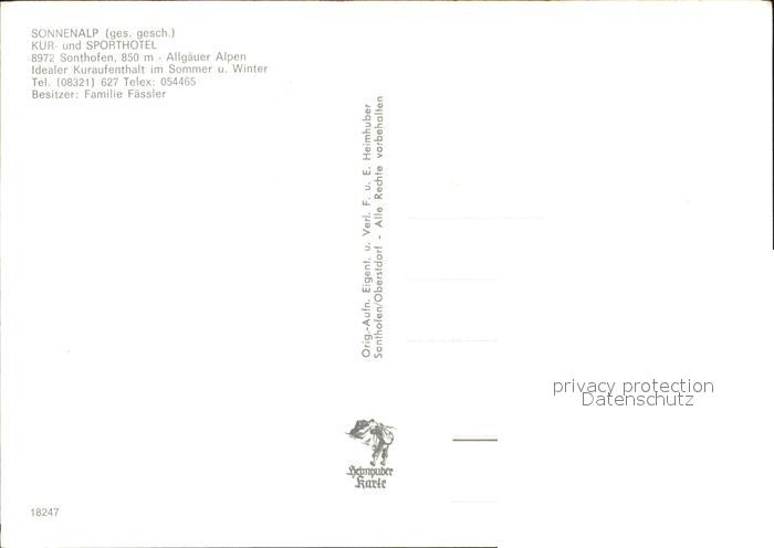 72515589 Sonthofen Oberallgaeu Kur und Sporthotel Sonnenalp Alpclub Rotisserie Details postalisch nicht gelaufen Erhaltung siehe scans KatCode: 11110009780139