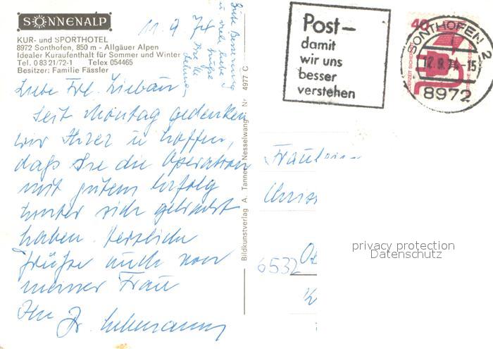 73655820 alte Postkarte Sonthofen Oberallgaeu Kur- und Sporthotel Sonnenalp Freibad postalisch gelaufen Erhaltung siehe scans [FriedD77] KatCode: 11110009780139