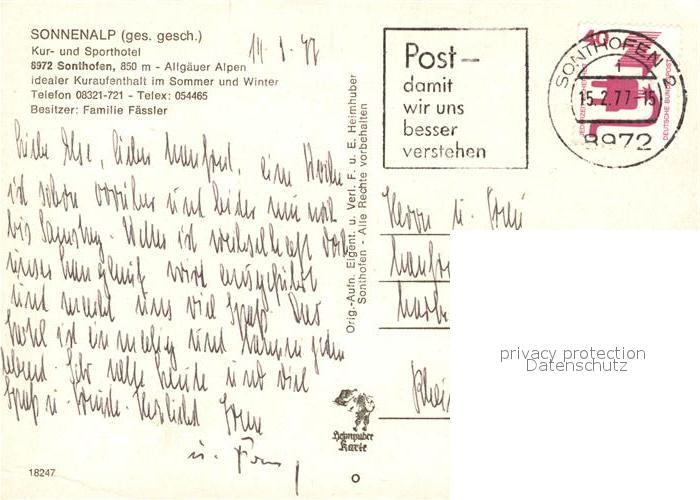 73103896 alte Postkarte Sonthofen Oberallgaeu Kur und Sporthotel Sonnenalp Rotisserie Details postalisch gelaufen Erhaltung siehe scans [WerneD78] KatCode: 11110009780139