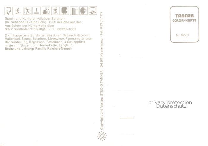 72960105 Sonthofen Oberallgaeu Kurhotel Allgaeuer Beghof postalisch nicht gelaufen Erhaltung siehe scans [PaolaD17] KatCode: 11110009780139