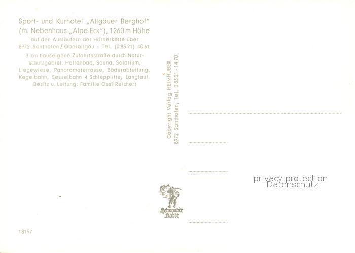 73076988 Sonthofen Oberallgaeu Kurhotel Allgaeuer Berghof postalisch nicht gelaufen Erhaltung siehe scans [KathaD81] KatCode: 11110009780139