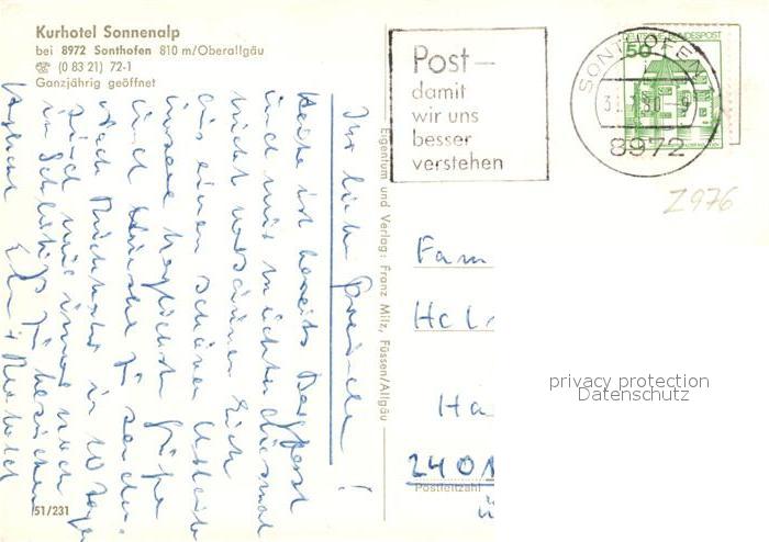 73129458 alte Postkarte Sonthofen Oberallgaeu Kurhotel Sonnenalp postalisch gelaufen Erhaltung siehe scans [PaolaD17] KatCode: 11110009780139
