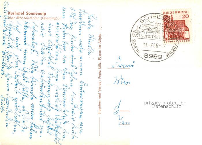 72931184 alte Postkarte Sonthofen Oberallgaeu Kurhotel Sonnenalp postalisch gelaufen Erhaltung siehe scans [KathaD81] KatCode: 11110009780139