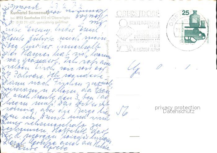 72579966 alte Postkarte Sonthofen Oberallgaeu Kurhotel Sonnenalp postalisch gelaufen Erhaltung siehe scans [LiesaD40] KatCode: 11110009780139