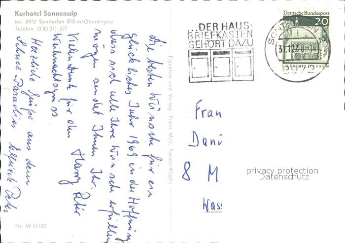 72549567 alte Postkarte Sonthofen Oberallgaeu Kurhotel Sonnenalp postalisch gelaufen Erhaltung siehe scans [AndreD76 kv022box] KatCode: 11110009780139