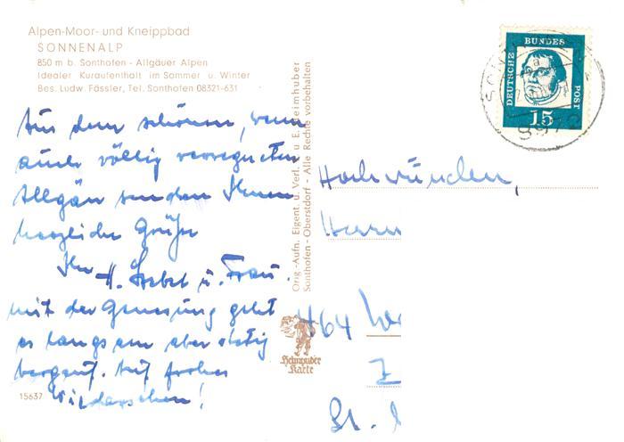 73904104 alte Postkarte Sonthofen Oberallgaeu Kurhotel Sonnenalp postalisch gelaufen Erhaltung siehe scans [WerneD78] KatCode: 11110009780139