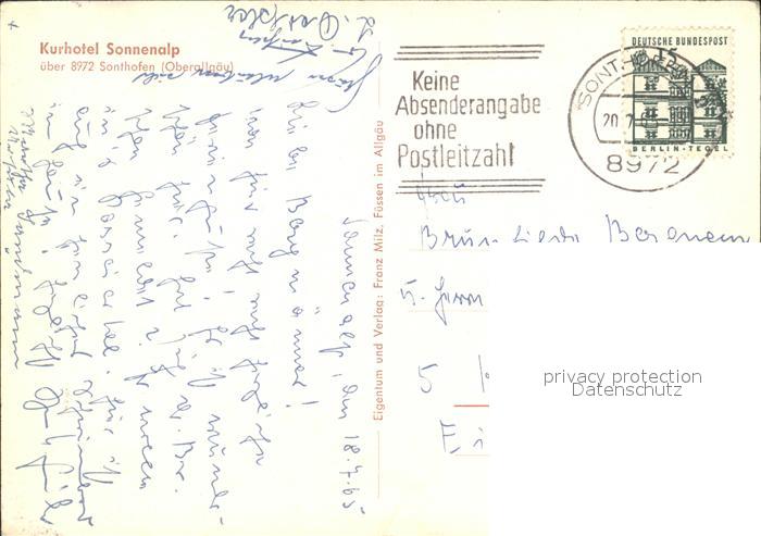 72374701 alte Postkarte Sonthofen Oberallgaeu Kurhotel Sonnenalp postalisch gelaufen Erhaltung siehe scans KatCode: 11110009780139