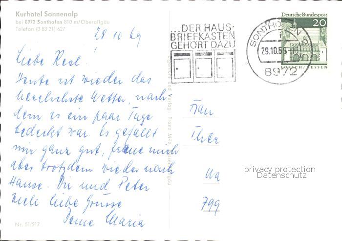 71913222 alte Postkarte Sonthofen Oberallgaeu Kurhotel Sonnenalp postalisch gelaufen Erhaltung siehe scans KatCode: 11110009780139