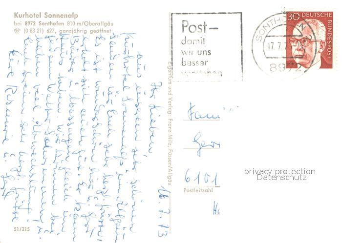 73633512 alte Postkarte Sonthofen Oberallgaeu Kurhotel Sonnenalp postalisch gelaufen Erhaltung siehe scans [WerneD78] KatCode: 11110009780139