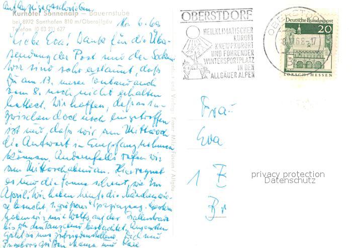 73054716 alte Postkarte Sonthofen Oberallgaeu Kurhotel Sonnenalp Bauernstube postalisch gelaufen Erhaltung siehe scans [WerneD78] KatCode: 11110009780139