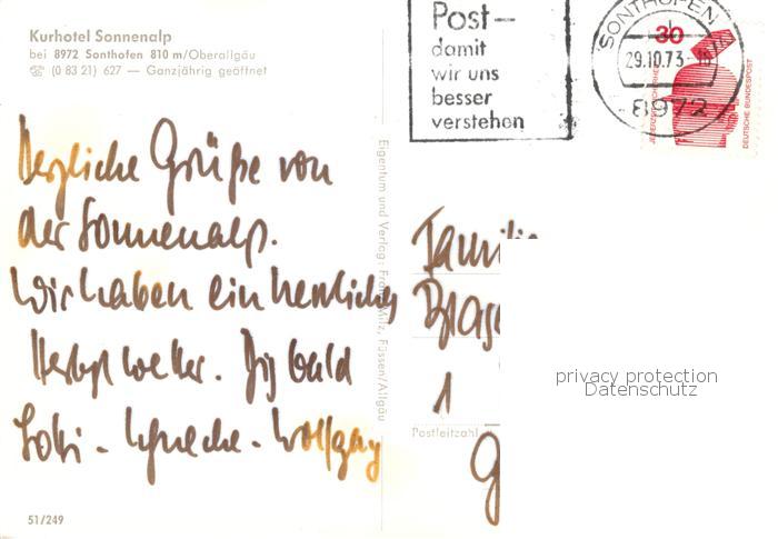 73803675 alte Postkarte Sonthofen Oberallgaeu Kurhotel Sonnenalp Gastraeume Schwimmbad postalisch gelaufen Erhaltung siehe scans [WerneD78] KatCode: 11110009780139