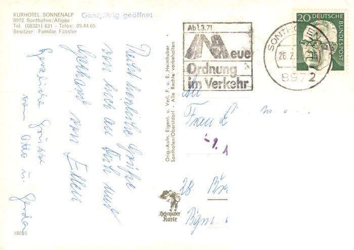 73908371 alte Postkarte Sonthofen Oberallgaeu Kurhotel Sonnenalp Gaststube postalisch gelaufen Erhaltung siehe scans [WerneD78] KatCode: 11110009780139