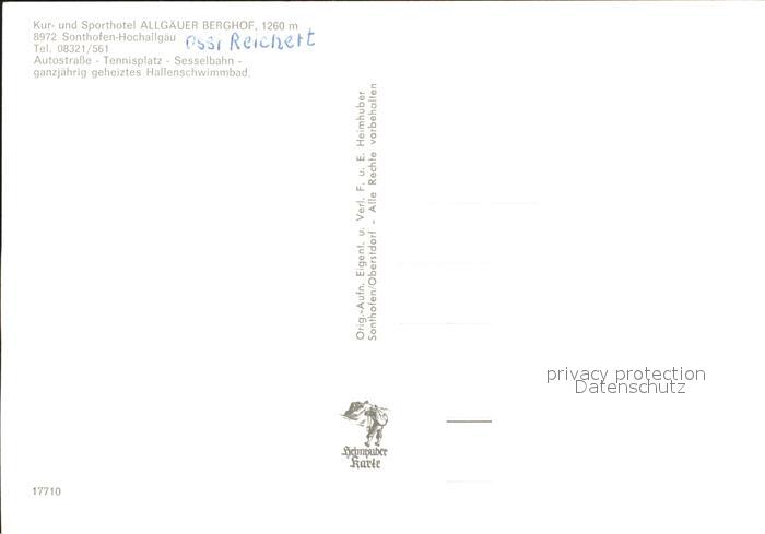 72255455 Sonthofen Oberallgaeu Kurhotel Sporthotel Allgaeuer Berghof Allgaeuer Alpen postalisch nicht gelaufen Erhaltung siehe scans KatCode: 11110009780139
