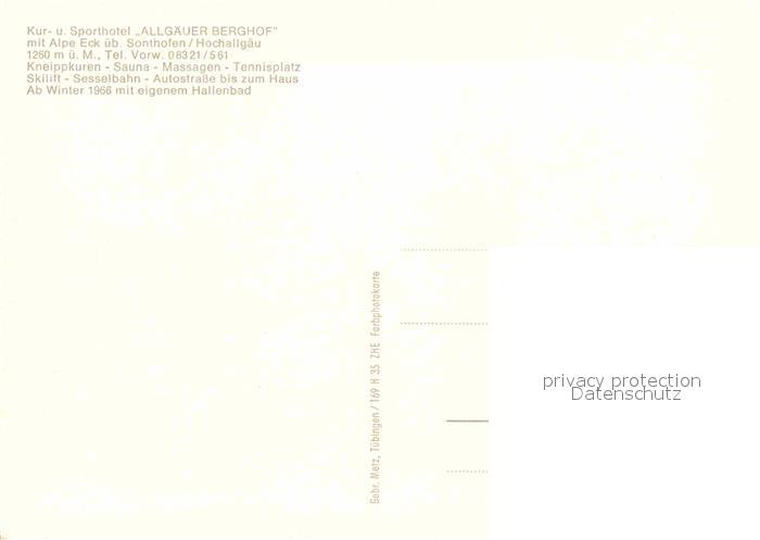 72678528 Sonthofen Oberallgaeu Kurhotel Sporthotel Allgaeuer Berghof mit Alpe Eck Allgaeuer Alpen postalisch nicht gelaufen Erhaltung siehe scans [FriedD77] KatCode: 11110009780139