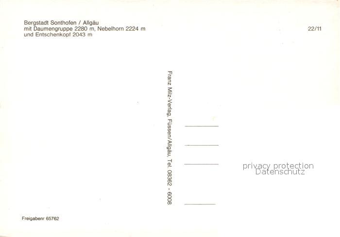 73265744 Sonthofen Oberallgaeu mit Daumengruppe Nebelhorn Entschenkopf Alpen Fliegeraufnahme postalisch nicht gelaufen Erhaltung siehe scans [FriedD77] KatCode: 11110009780139