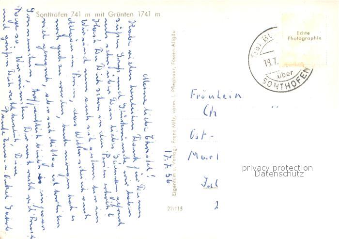 73670854 alte Postkarte Sonthofen Oberallgaeu mit Gruenten postalisch gelaufen Erhaltung siehe scans [WerneD78] KatCode: 11110009780139