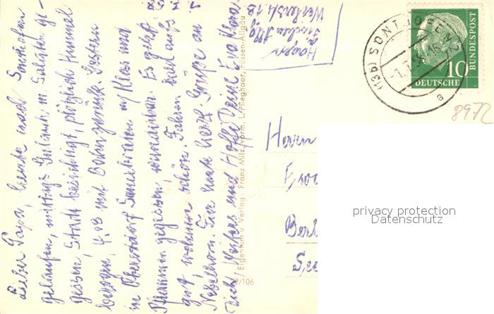 43352205 alte Postkarte Sonthofen Oberallgaeu mit Kirche Stuiben Steineberg und Mittag postalisch gelaufen Erhaltung siehe scans [WerneD78] KatCode: 11110009780139