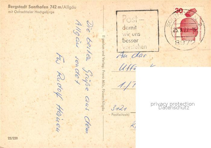 73068482 alte Postkarte Sonthofen Oberallgaeu mit Ostrachtaler Hochgebirge postalisch gelaufen Erhaltung siehe scans [WerneD78] KatCode: 11110009780139