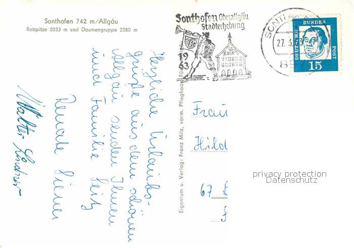 72856346 alte Postkarte Sonthofen Oberallgaeu mit Rotspitze und Daumengruppe postalisch gelaufen Erhaltung siehe scans [WerneD78] KatCode: 11110009780139