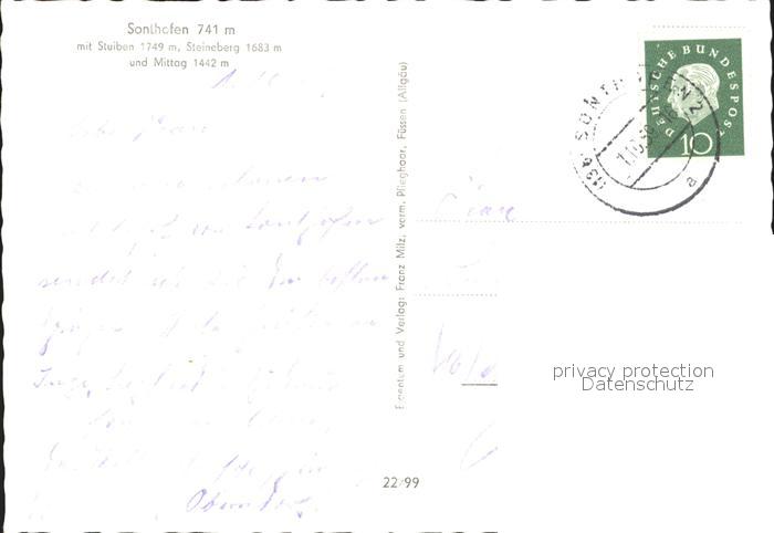 72195985 alte Postkarte Sonthofen Oberallgaeu mit Stiuben Steineberg und Mittag postalisch gelaufen Erhaltung siehe scans KatCode: 11110009780139