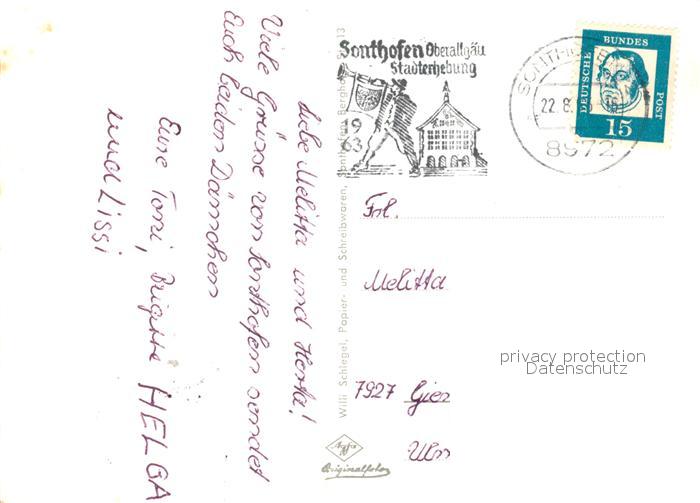 73104047 alte Postkarte Sonthofen Oberallgaeu Panorama Kirche Alpen postalisch gelaufen Erhaltung siehe scans [KathaD81] KatCode: 11110009780139