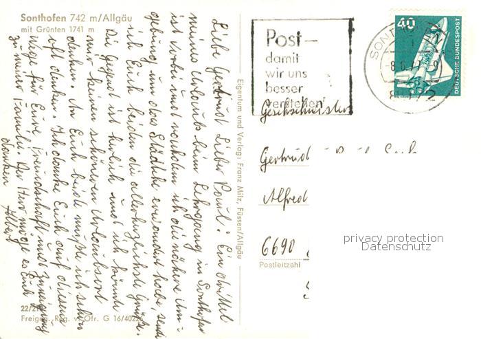 73620646 alte Postkarte Sonthofen Oberallgaeu Panorama mit Blick zum Gruenten Allgaeuer Alpen Fliegeraufnahme postalisch gelaufen Erhaltung siehe scans [FriedD77] KatCode: 11110009780139