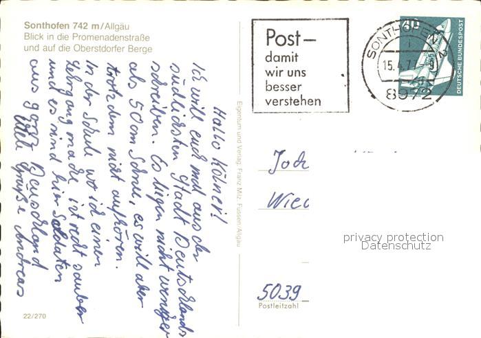 72389873 alte Postkarte Sonthofen Oberallgaeu Promenadenstrasse postalisch gelaufen Erhaltung siehe scans KatCode: 11110009780139