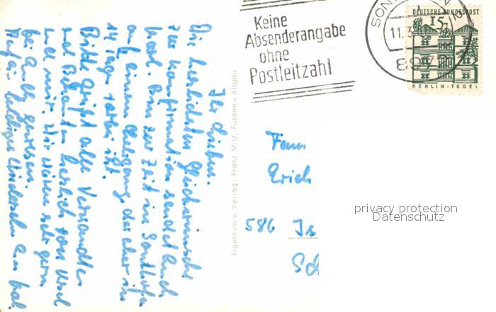 72794067 alte Postkarte Sonthofen Oberallgaeu Seepartie Burg Skigebiet postalisch gelaufen Erhaltung siehe scans [LiesaD40] KatCode: 11110009780139
