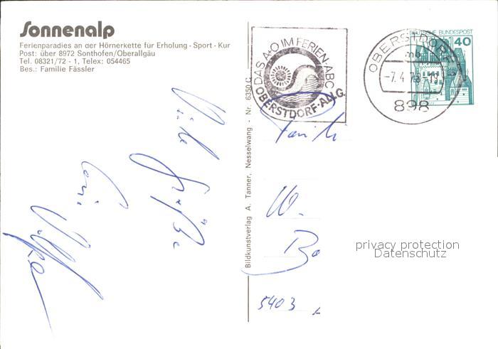 71893486 alte Postkarte Sonthofen Oberallgaeu Sonnenalp postalisch gelaufen Erhaltung siehe scans KatCode: 11110009780139