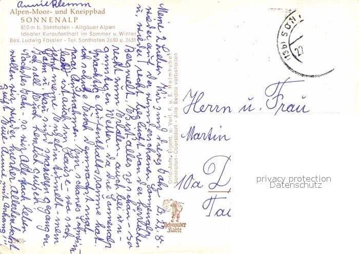 72857033 alte Postkarte Sonthofen Oberallgaeu Sonnenalp Berggaststaette Terrasse Alpenpanorama postalisch gelaufen Erhaltung siehe scans [FriedD77] KatCode: 11110009780139